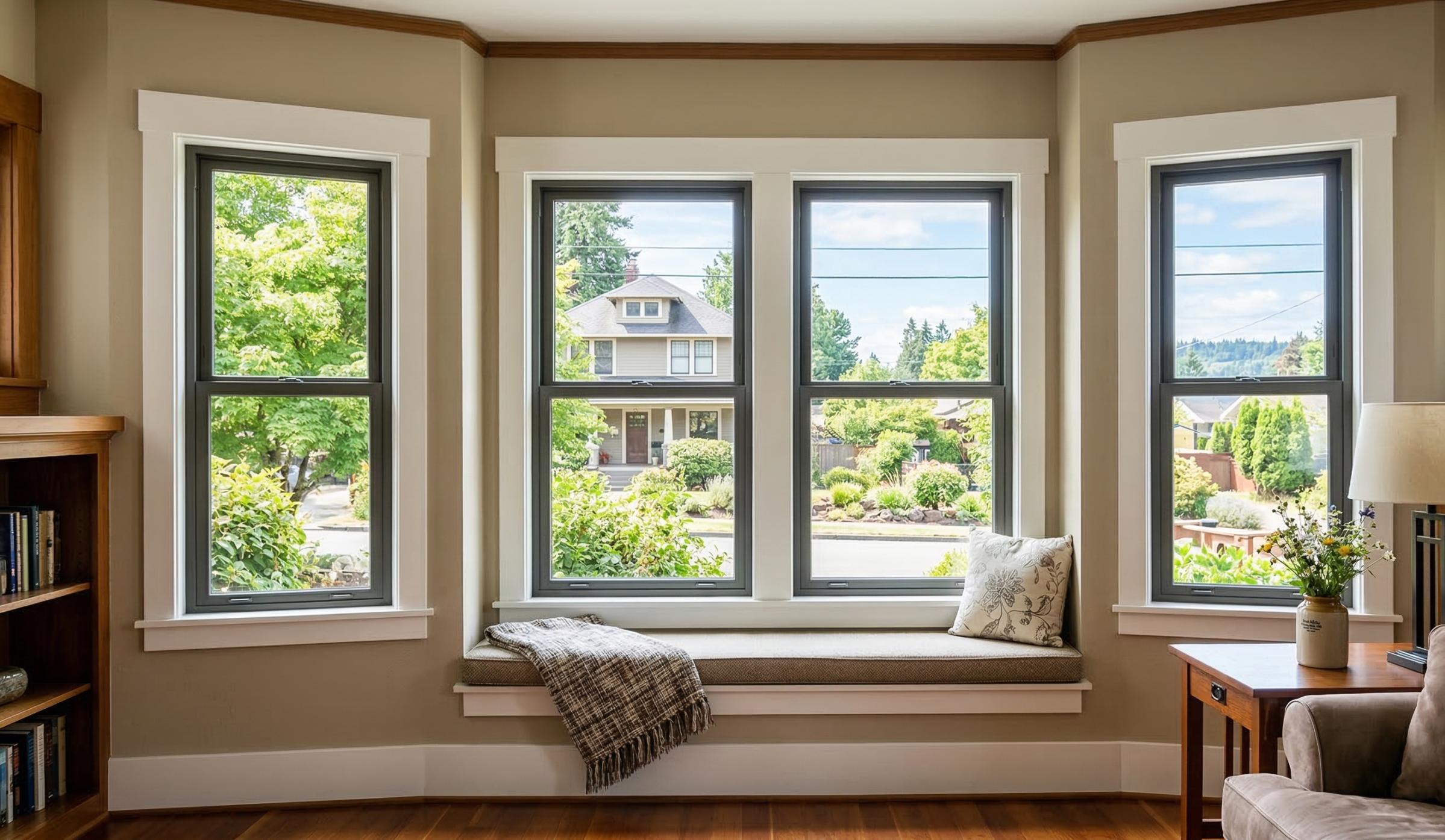 Vinyl and fiberglass windows perform especially well in Monroe because they resist moisture, maintain strong insulation, and hold up against the wet winters and temperature swings common in the Cascade foothills.